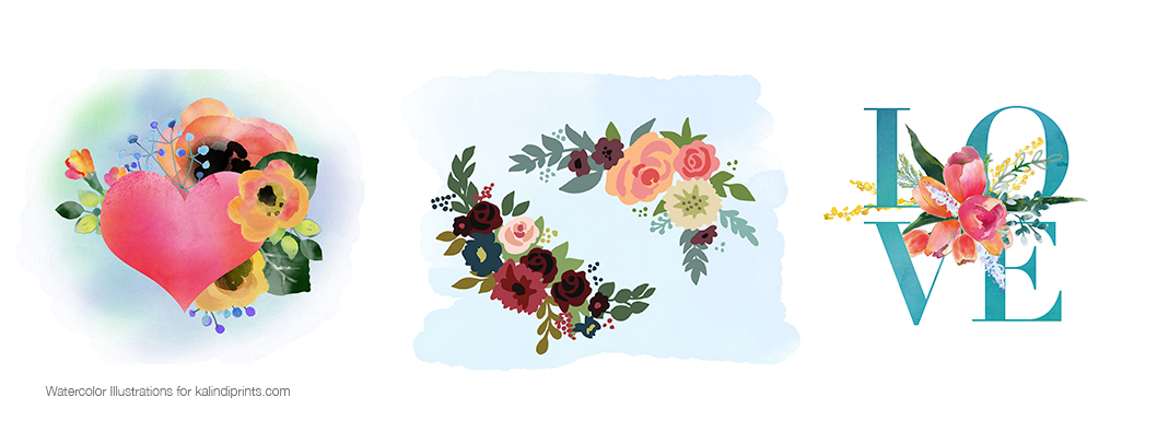 Create invitations, watercolor cliparts, SVG images for cutting machines for kalindiprints.com